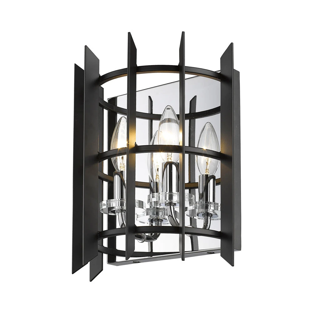Not a subtle fixture to hide behind the scenes, the Haake Wall Light from Z-Lite instead delivers a dynamic presence. Its dimensional round configuration embellishes the striking look of a geometric matte black finish paneled frame with contrasting chrome steel assembling a pair of chic torpedo sockets.