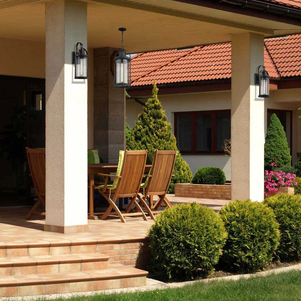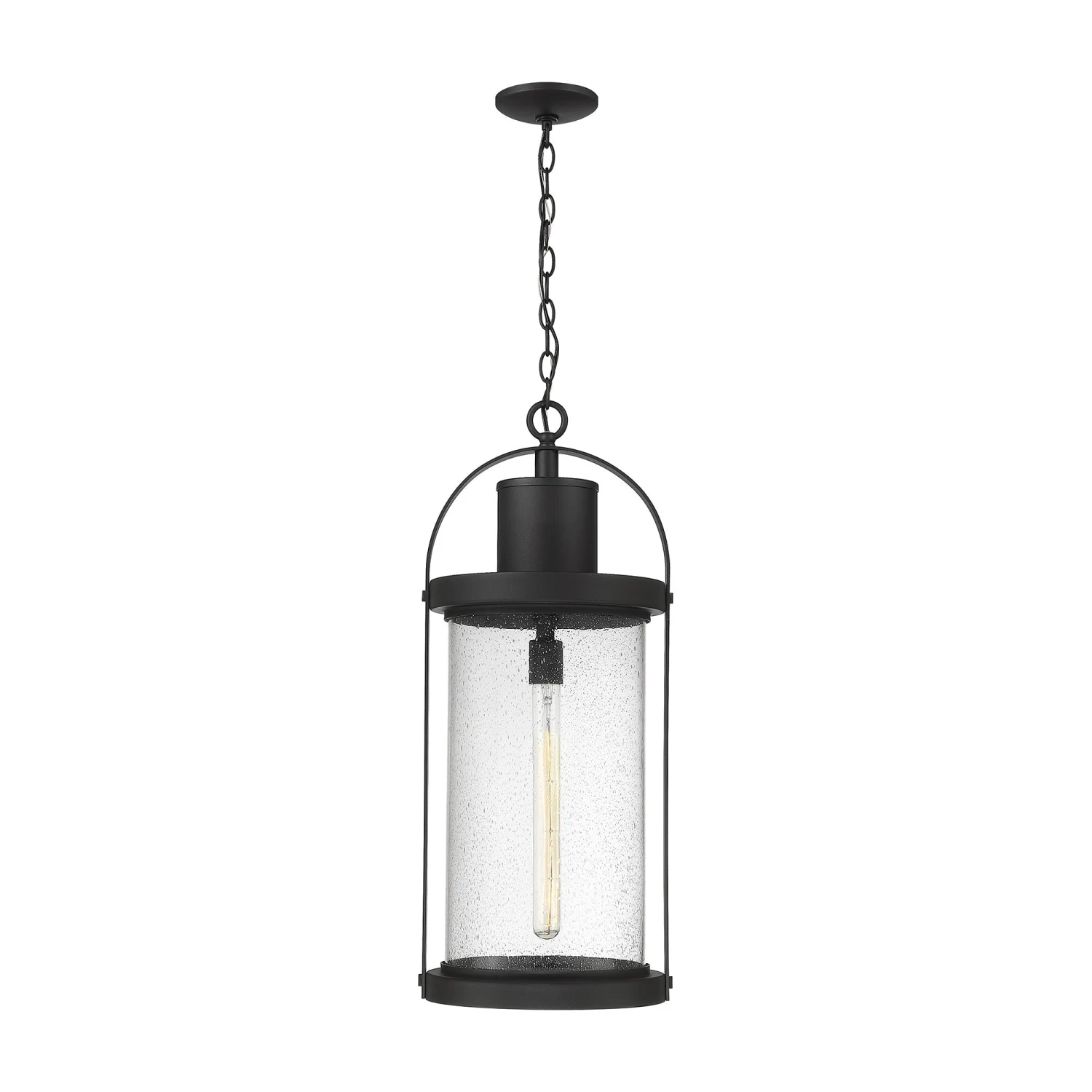 A twist on the iconic lantern design, the Roundhouse Outdoor Pendant Light from Z-Lite is right at home on a front porch or backyard entertaining space. Weather-resistant aluminum framing adds definition with a bold black finish. Clear seedy glass forms a cylinder shade embellished with a romantic impact.