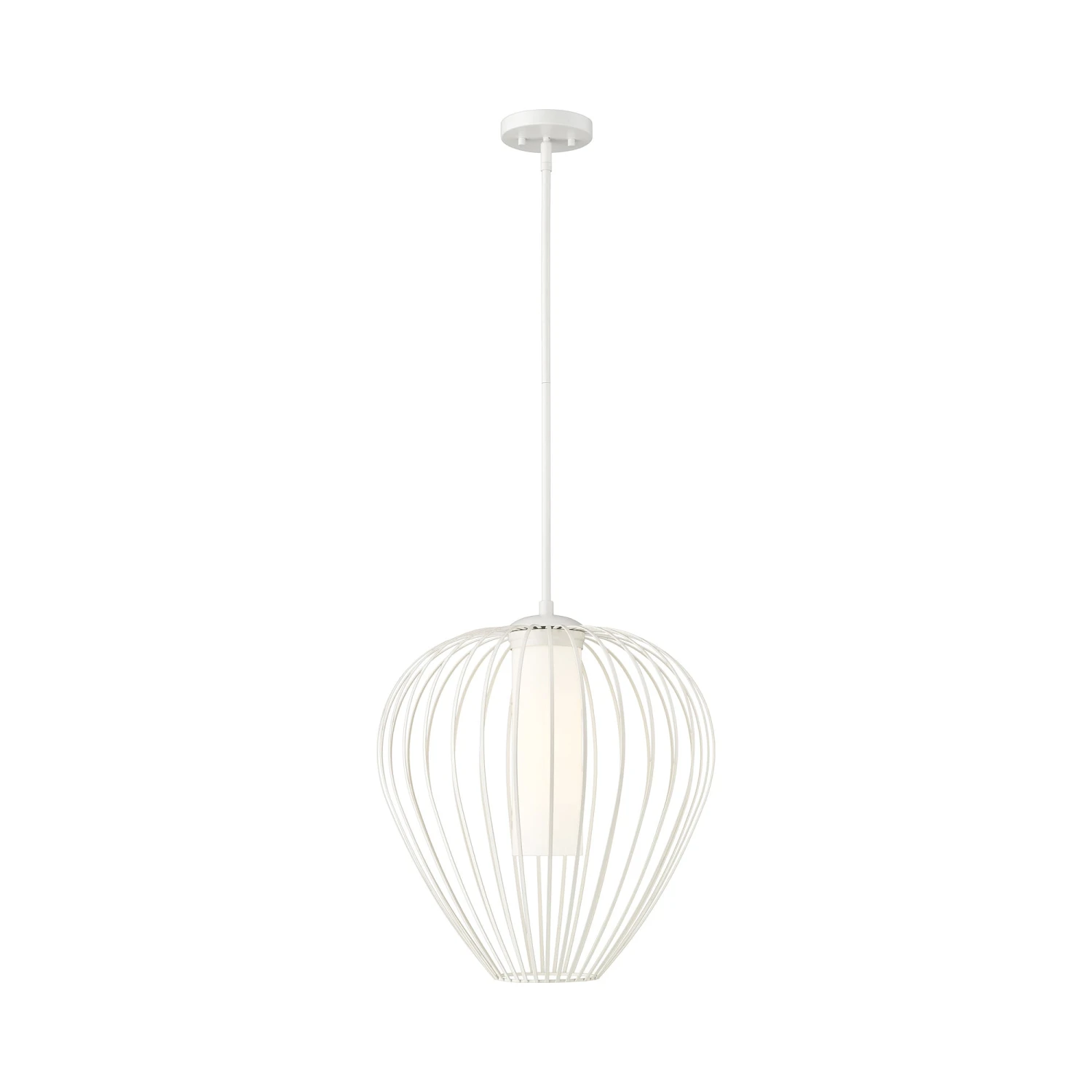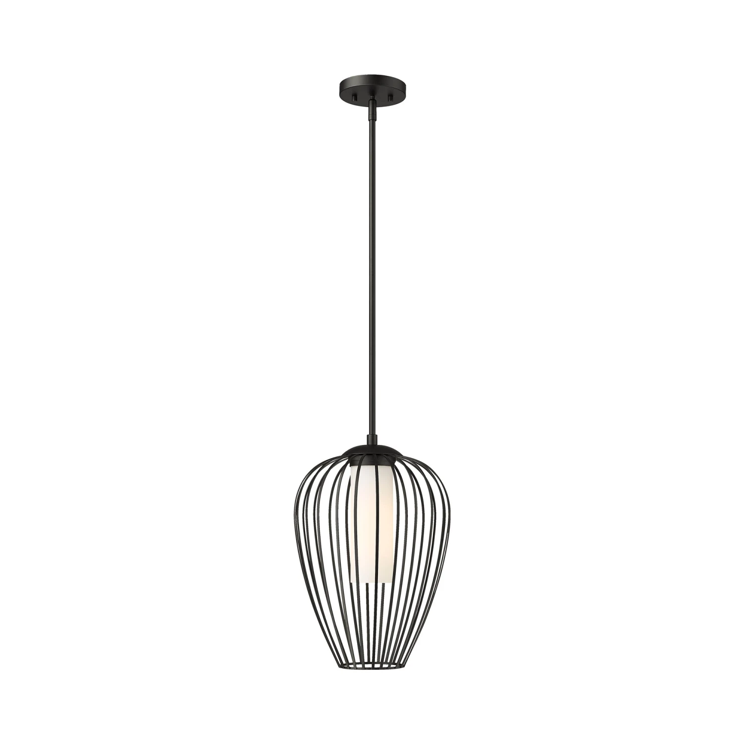 The Savanti Pendant Light from Z-Lite invokes a love of boho style, fashion-forward with a retro motif. Its shapely shade offers openwork steel construction of thin rods that partially conceal a white opal finish diffuser.