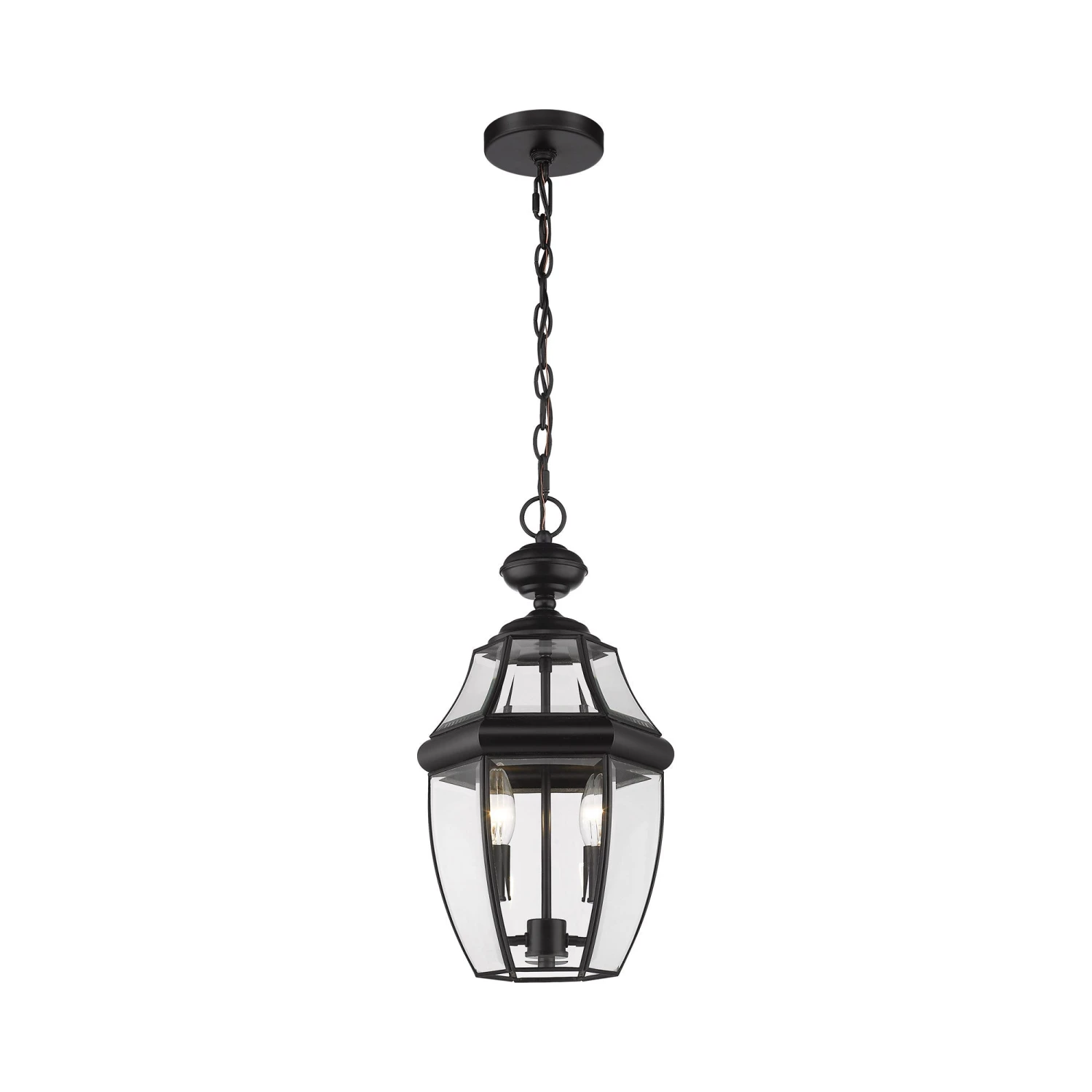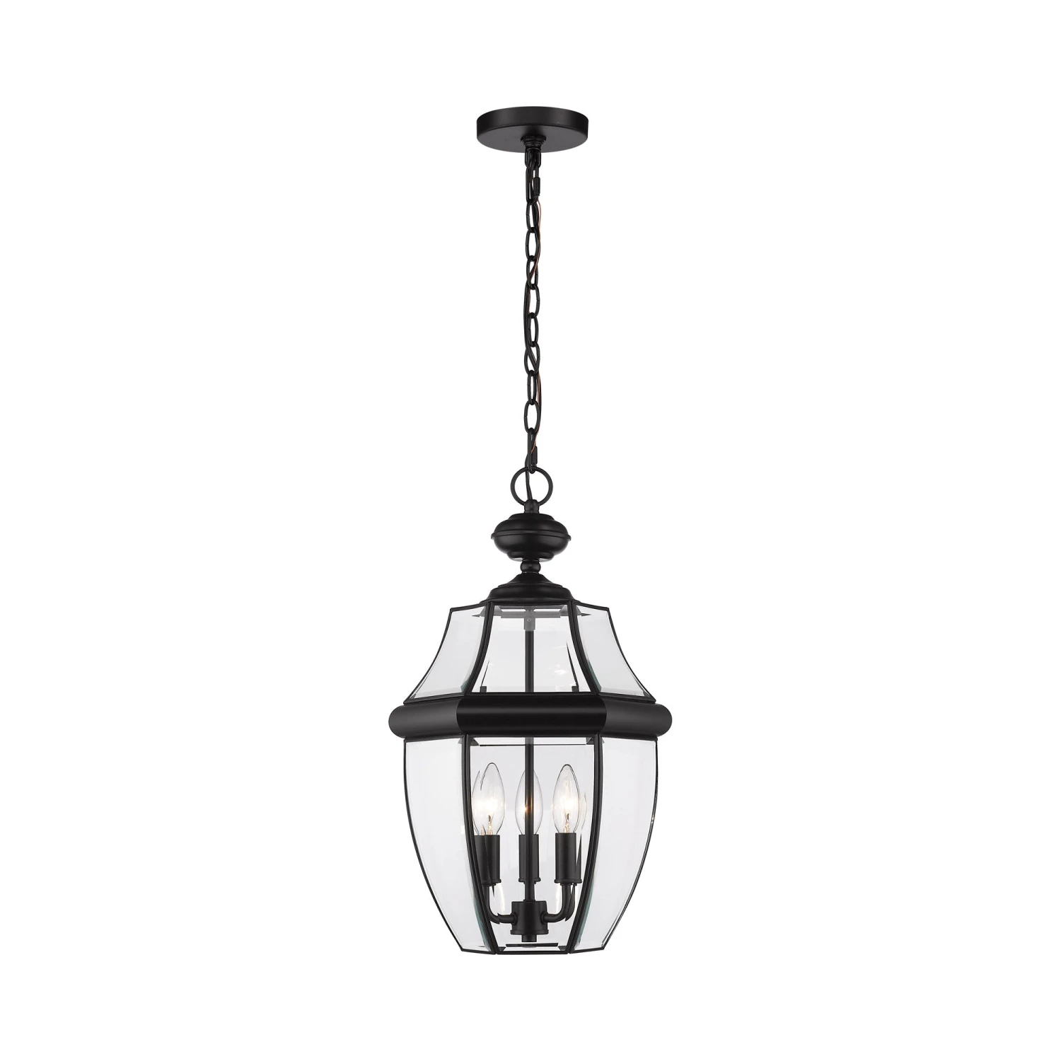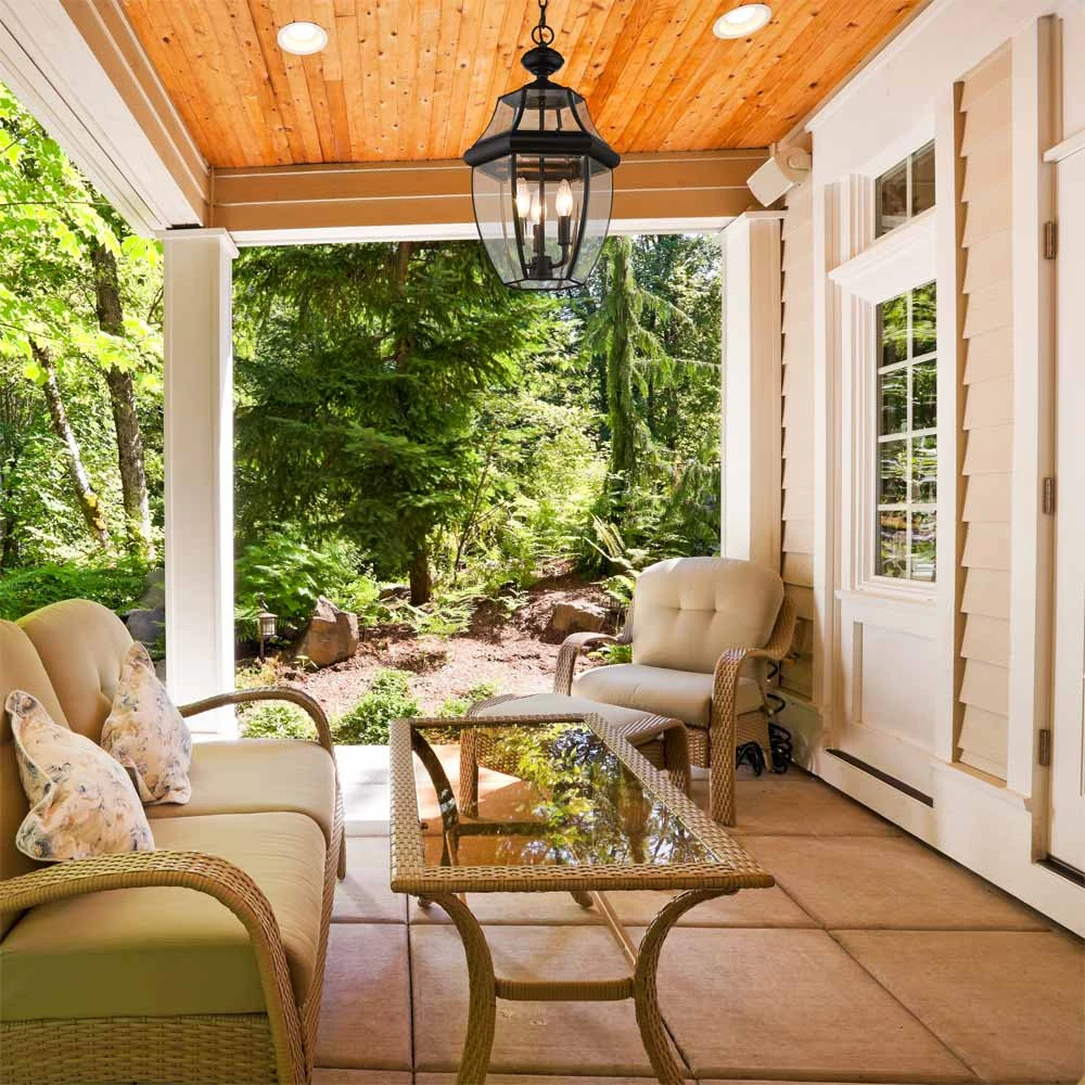 We’re captivated by the artisan inspiration in a light fixture fashioned from a romantic lantern vibe. The Westover Outdoor Pendant Light from Z-Lite places an emphasis on clear beveled glass panels, stacked and separated with elements of black finish aluminum framing. Interior candelabra lighting is dimmable, offering light levels suited to entertaining at nighttime or evenings.