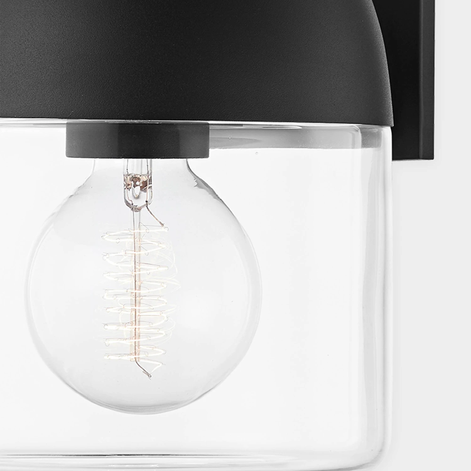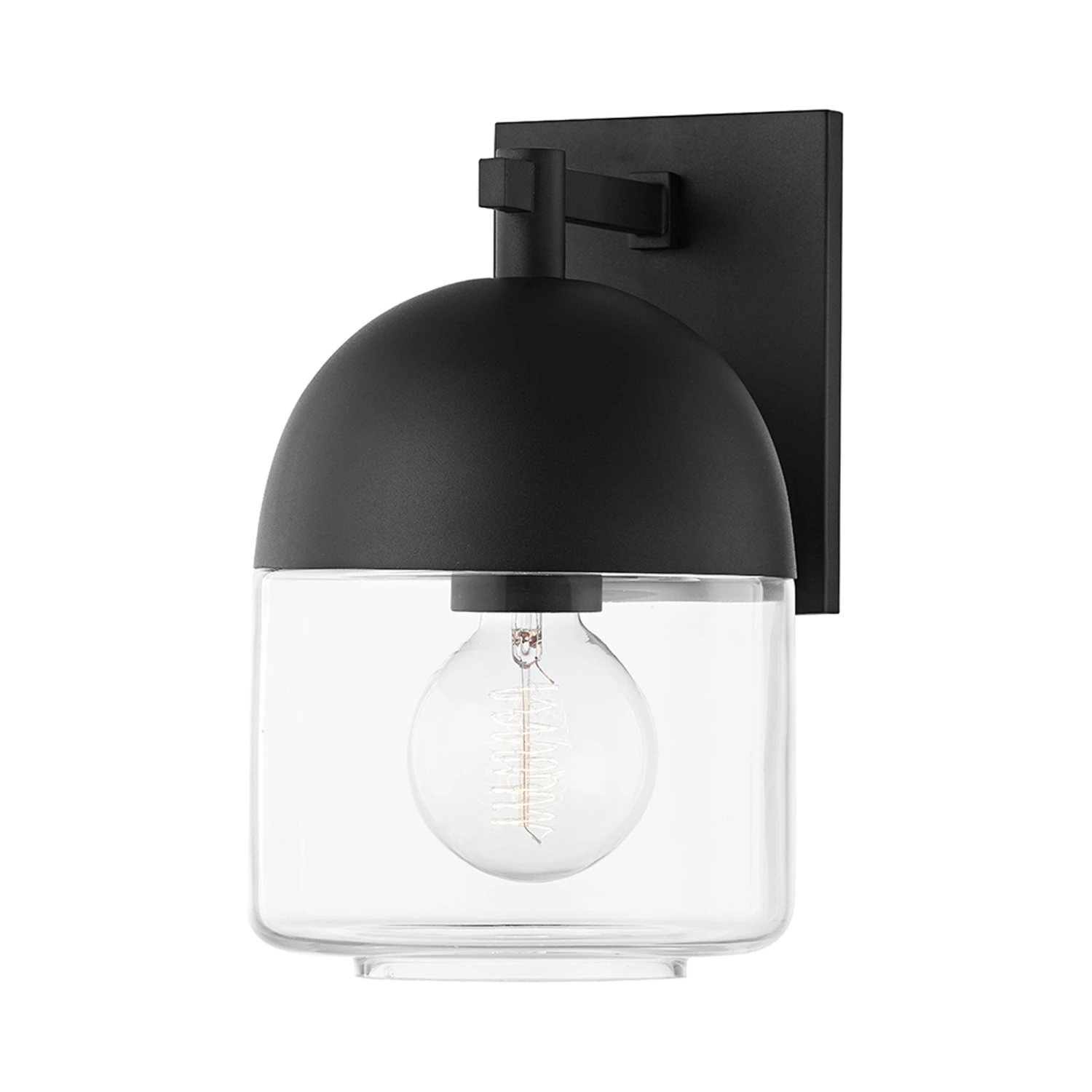 With a classic and charming dome silhouette, the metal frame of the Zephyr Outdoor Wall Light from Troy Lighting perfectly caps a delicate clear seeded glass shade, creating a Mid-Century Modern feel to an exterior patio or residential structure.